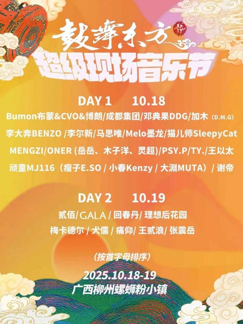 10月的柳州精彩持续加码,文娱演出热度不减!接下来,“你好柳州”热爱音乐节、鼓舞东方超级现场音乐节——柳州站、三江多耶音乐节等将即将开唱...